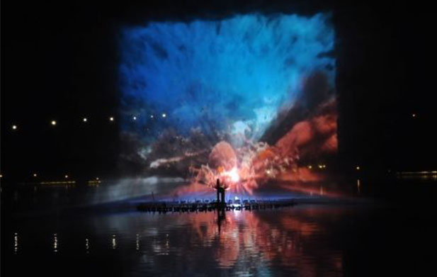 霧幕投影系統(tǒng)使用超聲集成霧化發(fā)生器產(chǎn)生大量的顆粒霧,并結(jié)合氣流原理產(chǎn)生平坦的霧。將粒子的粒子平面特性用作光路載體,然后將特殊的光滑生動的介質(zhì)流體投射到載體上,在空間中形成虛構(gòu)的立體圖像,從而形成三維立體圖像,從而獲得了新的一種空間。